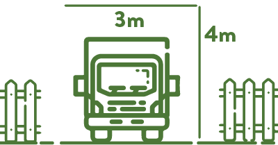 A minimum of 3m wide & 4m high is required for the truck to get down driveways.